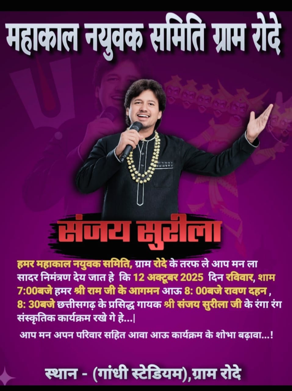 ЁЯМЯ 12 рдЕрдХреНрдЯреВрдмрд░ рдХреЛ рдХреЛрд░рдмреА (рд░реЛрджреЗ) рдореЗрдВ рд╕рдВрдЬрдп рд╕реБрд░реАрд▓рд╛ рд╕реНрдЯрд╛рд░ рдирд╛рдЗрдЯ рд╢реЛ рдХрд╛ рднрд╡реНрдп рдЖрдпреЛрдЬрди!