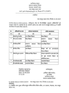 सामान्य प्रशासन विभाग (साप्रवि) ने मंत्रालय संवर्ग में बड़ा प्रशासनिक आदेश जारी किया है। विभाग द्वारा 7 अनुभाग अधिकारियों का तबादला किया गया है। अधिकारियों को तत्काल प्रभाव से नई जिम्मेदारी सौंपी गई है।
