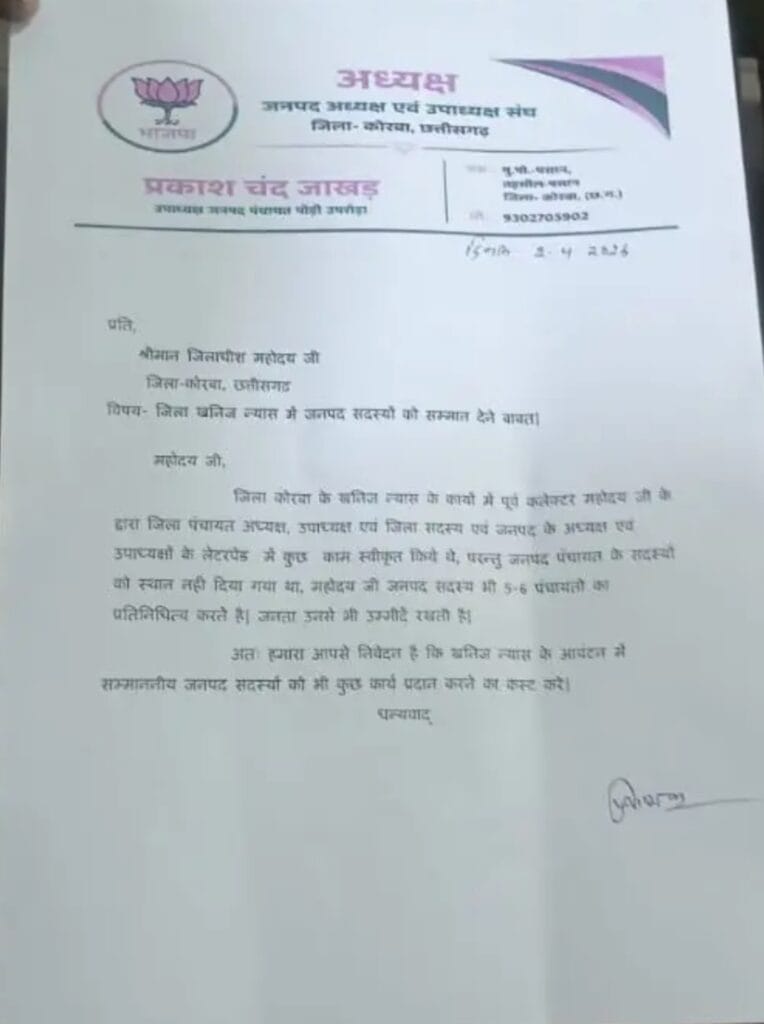 जनप्रतिनिधियों ने मांग की है कि DMF मद के कार्यों के आवंटन में उन्हें भी समान प्राथमिकता दी जाए, ताकि वे अपने क्षेत्रों में विकास कार्य कर सकें और जनता की अपेक्षाओं पर खरा उतर सकें।
