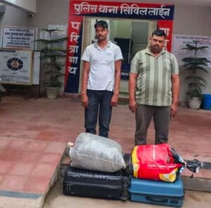 Loksadan. बिलासपुर पुलिस ने उसलापुर रेलवे स्टेशन पर बड़ी कार्रवाई करते हुए उत्तर प्रदेश के दो गांजा तस्करों को गिरफ्तार किया है। आरोपियों की पहचान 25 वर्षीय रूपेश सिंह निवासी ग्राम कोटवा हनुमानगंज थाना हडिया जिला प्रयागराज और 38 वर्षीय विनोद कुमार सिंह निवासी वार्ड क्रमांक 38 बुड़ियादेवी मंदिर थाना कोतवाली जिला प्रतापगढ़ उत्तर प्रदेश के रूप में हुई है।