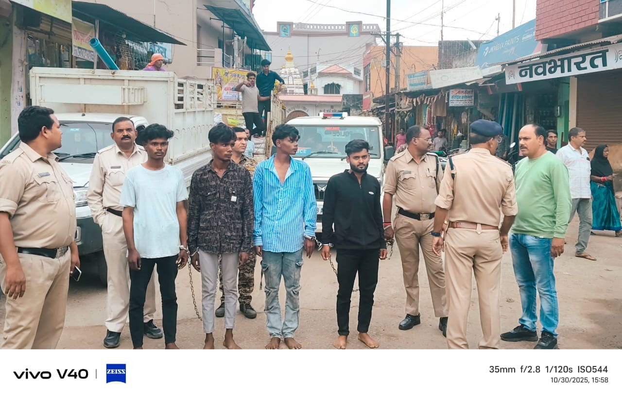 मुंगेली/लोरमी: पुलिस अधीक्षक भोजराम पटेल (भा.पु.से.) के सख्त निर्देशों पर लोरमी पुलिस ने पुरानी रंजिश के चलते हुए हत्या के प्रयास के मामले में महज 16 घंटे के भीतर तीन आरोपियों और दो अपचारी बालकों को गिरफ्तार कर बड़ी सफलता हासिल की है। पुलिस ने आरोपियों का शहर में जुलूस निकालने के बाद उन्हें जेल भेज दिया।