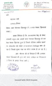 उन्होंने विभाग से मांग की है कि ग्राम पंचायत छिन्दपुर में दो स्पान केबल तत्काल बिछाई जाए, ताकि गांव में नियमित और सुरक्षित बिजली आपूर्ति सुनिश्चित हो सके। राठौर ने यह भी कहा कि यदि तीन दिनों के भीतर सुधार कार्य नहीं किया गया, तो ग्रामीणों के साथ मिलकर आंदोलन की तैयारी की जाएगी।