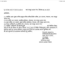 आदेश अवर सचिव मनराखन भूआर्य द्वारा जारी किया गया।