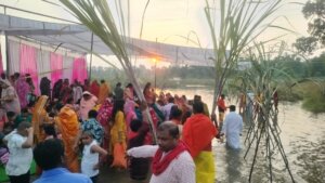 फुलसर नदी घाट पर शाम का दृश्य अत्यंत मनमोहक रहा — जहां दीपों की लौ, भक्ति गीतों की गूंज और सूर्य को अर्घ्य देते व्रतियों की श्रद्धा ने आस्था का अनूठा संगम रचा। श्रद्धालुओं ने सूर्यास्त के बाद दीप प्रज्वलित कर छठी मैया से परिवार की सुख-समृद्धि की कामना की।