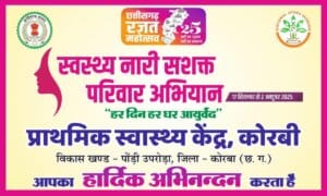 महिलाओं के स्वास्थ्य एवं परिवार के समग्र कल्याण को ध्यान में रखते हुए सरकार की महत्वाकांक्षी योजना “स्वस्थ नारी, सशक्त परिवार, हर दिन हर घर आयुर्वेद” अंतर्गत जिले के सभी विकासखंडों में 17 सितम्बर से 2 अक्टूबर तक स्वास्थ्य शिविरों का आयोजन किया जा रहा है।