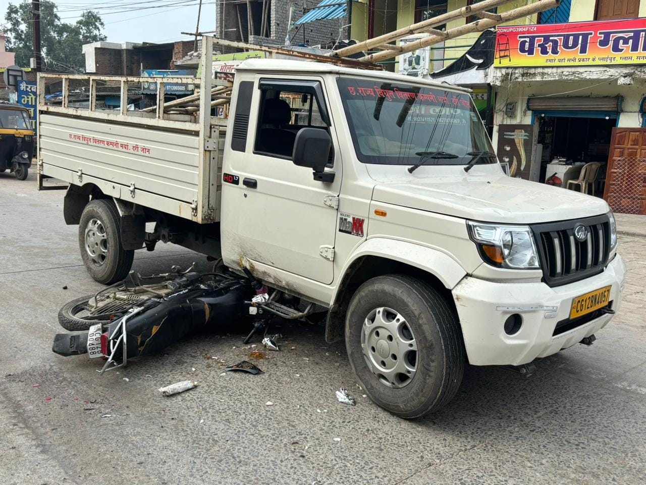 कोरबा। दर्री प्रेम नगर जेलगांव चौक में आज एक सड़क हादसा होते-होते बड़ा हादसा टल गया। जानकारी के अनुसार हाईवा वाहन क्रमांक CG 10 BP 5588 ने एक दोपहिया वाहन को टक्कर मार दी, जिससे बाइक सवार असंतुलित होकर छत्तीसगढ़ विद्युत वितरण कंपनी के पिकअप वाहन में जा टकराया।
