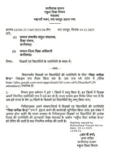 जारी निर्देश में स्पष्ट किया गया है कि सभी संभागीय संयुक्त संचालक एवं जिला शिक्षा अधिकारी अपने-अपने क्षेत्रों में यह सुनिश्चित करेंगे कि शिक्षकों एवं विद्यार्थियों की उपस्थिति ‘विद्या समीक्षा केंद्र’ ऐप में अनिवार्य रूप से दर्ज हो।