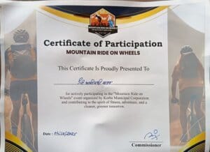 फोटो कैप्शन: “माउंटेन राइड ऑन व्हील्स” कार्यक्रम में कई जिलों के प्रतिभागियों के बीच श्री भागीरथी यादव को प्रमाणपत्र प्रदान किया जा रहा है।