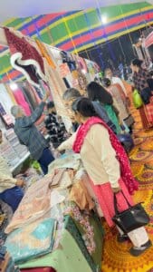 त्योहारों को देखते हुए यहां विशेष कलेक्शन भी उपलब्ध कराया गया है। स्टॉल्स पर लेडीज़ कुर्ती, डिज़ाइनर लेदर जैकेट, महाराष्ट्र की फैंसी चप्पलें, मुरादाबाद के गिफ्ट आइटम, मेरठ की खादी शर्ट, साथ ही पापड़-आचार जैसी घरेलू वस्तुएं भी ग्राहकों को आकर्षित कर रही हैं।