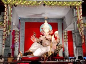 इस बार पंडाल का स्वरूप केरल स्थित पद्मनाभस्वामी मंदिर की तर्ज पर तैयार किया गया है। 111 फीट ऊँचे इस पंडाल में 21 फीट ऊँची श्री गणेश प्रतिमा विराजमान है,जिसका अलौकिक स्वरूप श्रद्धालुओं को मंत्रमुग्ध कर रहा है। प्रतिमा के साथ ही जीवंत हनुमान जी की प्रतिमा,विविध धार्मिक झांकियां और आकर्षक साज-सज्जा भक्तों को अपनी ओर खींच रही हैं।