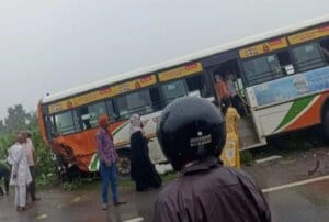 सड़क हादसा: तीन बसों की भिड़ंत, 20 यात्री घायल