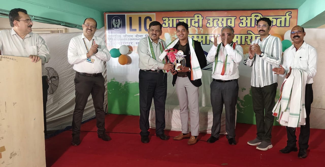 आजादी उत्सव सम्मान समारोह में सीनियर डिवीजनल मैनेजर SDM के द्वारा वेल्थ मैनेजर एजेंट रुकेश पटेल को ट्रॉफी व मेडल से किया सम्मानित