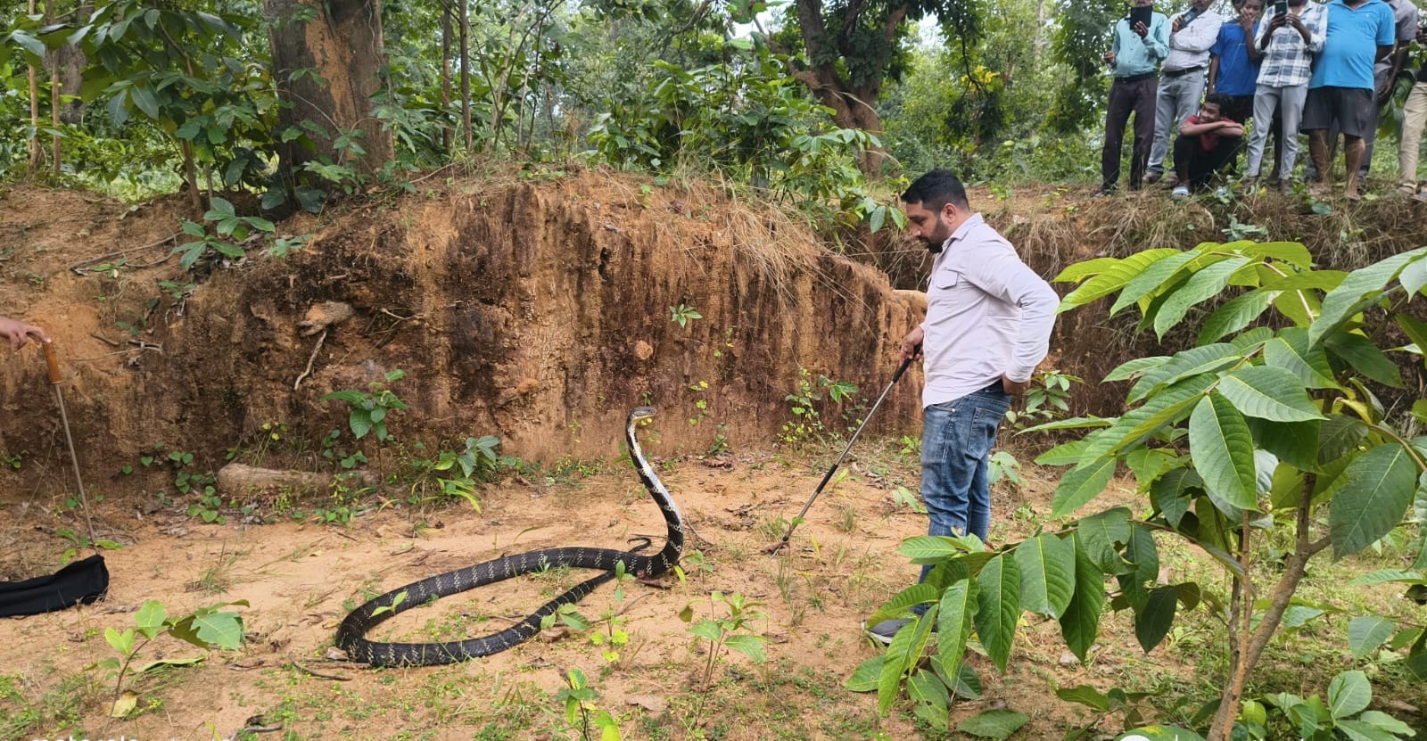 गांव पहुंचने के बाद टीम ने पहले ग्रामीणों को सुरक्षित दूरी पर किया और तय प्रोटोकॉल के अनुसार रेस्क्यू अभियान शुरू किया। लगभग डेढ़ घंटे तक चले इस अभियान में किंग कोबरा बार-बार फुफकारता रहा और अपना रौद्र रूप दिखाता रहा, लेकिन रेस्क्यू टीम ने धैर्यपूर्वक और सावधानी से कार्य करते हुए अंततः उसे सुरक्षित थैले में पकड़ने में सफलता प्राप्त की।
