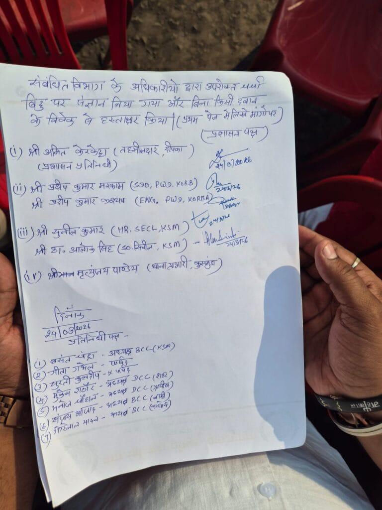 समझौता पत्र पर प्रशासन, पीडब्ल्यूडी, एसईसीएल और पुलिस विभाग के अधिकारियों ने हस्ताक्षर किए।