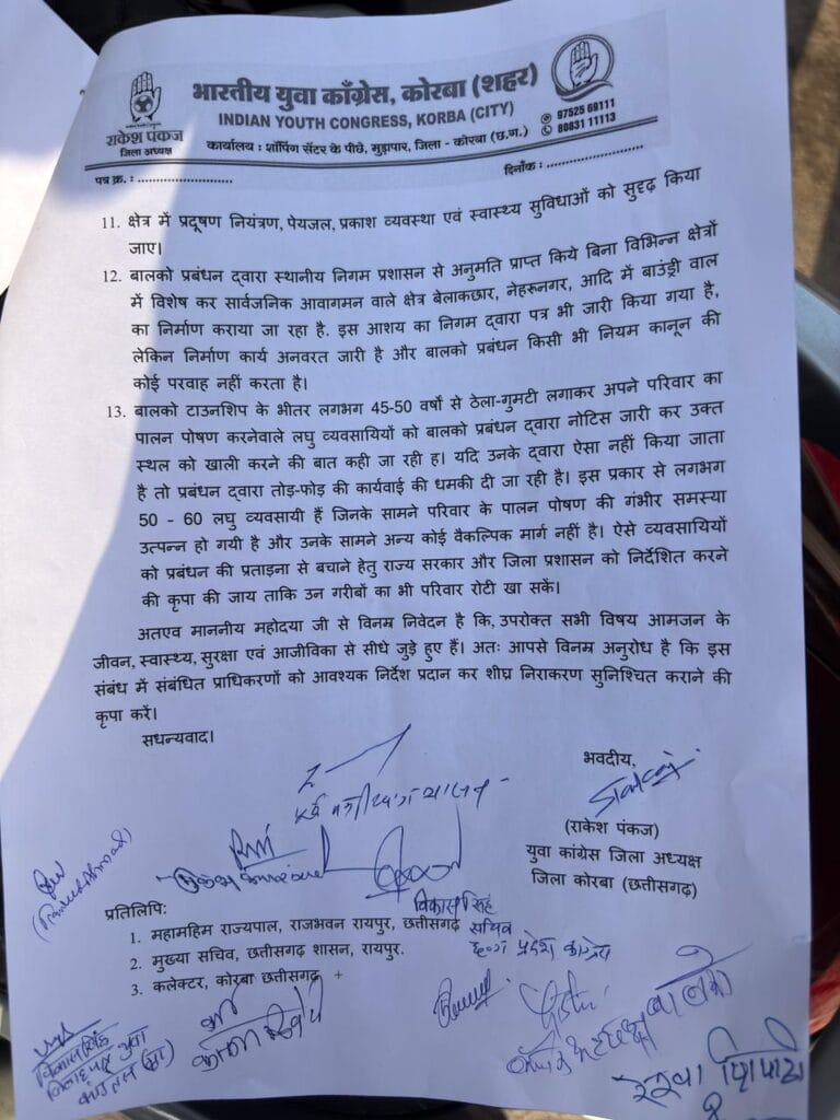 पूर्व राजस्व मंत्री जयसिंह अग्रवाल ने कहा कि बालको प्रबंधन की नीतियों से कर्मचारी, मजदूर, व्यापारी और आमजन सभी प्रभावित हो रहे हैं। उन्होंने स्पष्ट किया कि ठेला-गुमटी संचालकों के साथ किसी प्रकार की कार्रवाई बर्दाश्त नहीं की जाएगी।