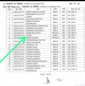 कोरबा। आबकारी उप निरीक्षक (कर्मचारी चयन) विभाग द्वारा जारी मुख्य सूची (Main List) में कोरबा जिले के युवा सूरज का नाम शामिल किया गया है। जारी सूची के पेज–9 पर रोल नंबर 2403183475 के साथ सूरज का चयन OBC वर्ग में हुआ है।
