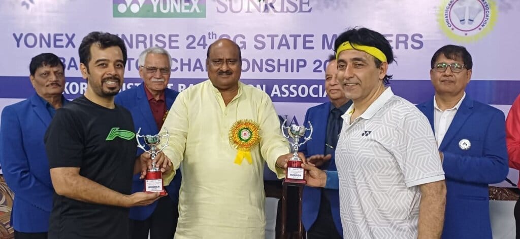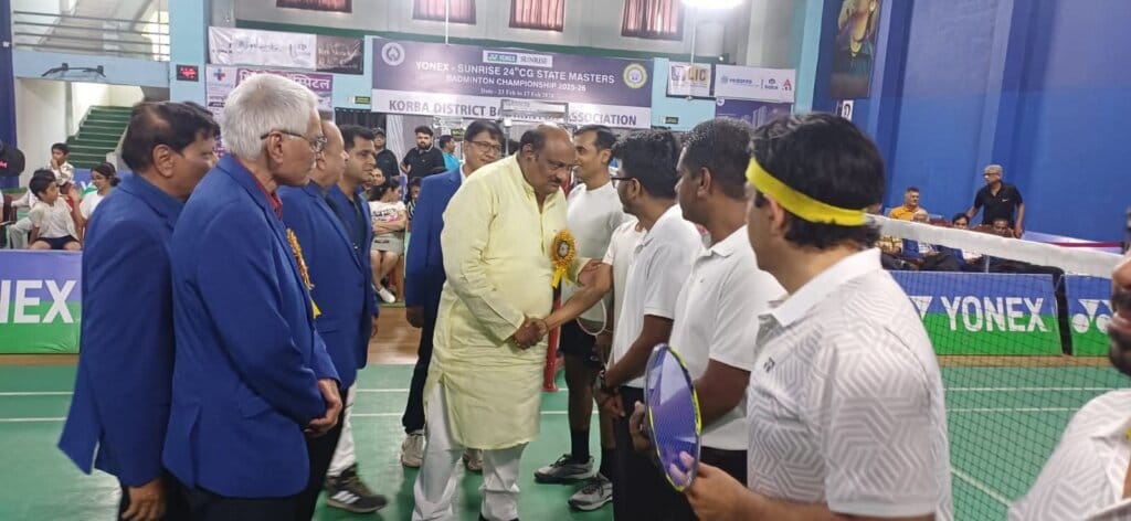 कोरबा। कोरबा डिस्ट्रिक्ट बैडमिंटन एसोसिएशन द्वारा एकलव्य स्पोर्ट्स एरीना में आयोजित योनेक्स–सनराइज 24वीं छत्तीसगढ़ राज्य मास्टर्स बैडमिंटन चैम्पियनशिप 2025-26 का समापन समारोह गरिमामय वातावरण में संपन्न हुआ। इस अवसर पर पूर्व मंत्री जयसिंह अग्रवाल मुख्य अतिथि के रूप में उपस्थित रहे और विजेता खिलाड़ियों को पुरस्कार वितरित कर उनका उत्साहवर्धन किया।